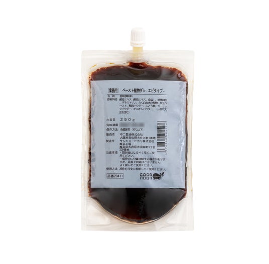 ※飲食店での調理などに扱いやすい250 gパウチ包材の「ペースト植物ダシーエビタイプー」も発売しております(左図)。