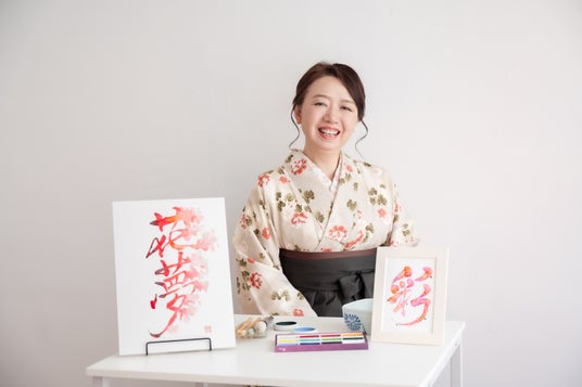 本講座は、書家として30年以上、1000人以上の指導実績を持つ幹弓華凰(みく・かこう)先生により考案。日本画の稽古中に、墨ではなく色を含んだ筆で書いた「寿」の文字。色と想いが交わった一瞬に、これまでの書とは違う“感動”が生まれたと言います。