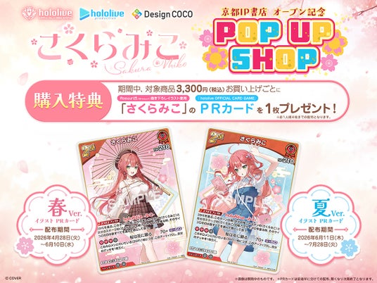 京都IP書店と株式会社デザインココ(本社:宮城県仙台市、代表取締役社長:千賀淳哉)は、京都IP書店のオープンを記念し、ホロライブの大人気VTuber「さくらみこ」のPOP UP SHOPを、2026年4月28日(火)より京都IP書店にて開催いたします。