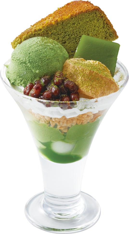 抹茶アイスクリームに、抹茶シフォンケーキなど、抹茶を存分に味わえる至高のパフェ。