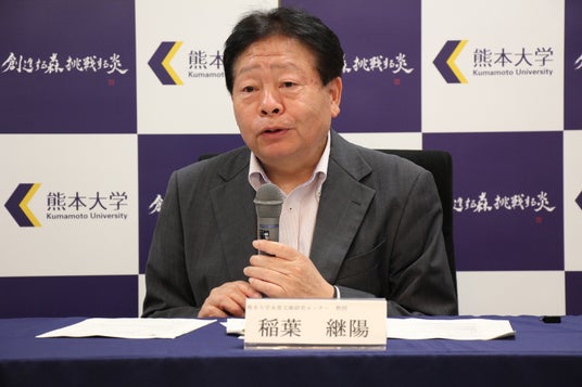 令和8年4月13日(月)、熊本大学本部棟1階大会議室にて、熊本大学永青文庫研究センターの稲葉 継陽 教授と八代市立博物館未来の森ミュージアムの林 千寿 学芸員が研究成果について説明する記者発表を実施しました。