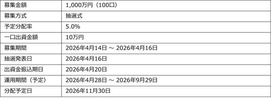 株式会社タスキホールディングス(本社:東京都港区、代表取締役社長:柏村 雄)のグループ会社である株式会社タスキ(本社:東京都港区、代表取締役社長:村田浩司、以下、タスキ)は、不動産投資型クラウドファンディングサービス「TASUKI FUNDS」において、2026年4月14日より「タスキ キャピタル重視型 第17号ファンド#1」の投資募集をいたしますので、お知らせします。