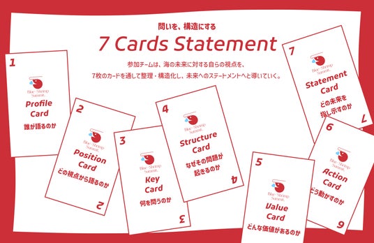 本プログラムでは、まず問題提起そのものを参加者自身が行い、その問いを、「7 Cards Statement」という独自のフレームワークに沿って、整理していきます。