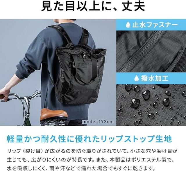 シーンに合わせて「リュック」と「トートバッグ」を使い分けが可能。使わないときは折りたたむことができ、バッグの中に収まるコンパクトなサイズ感がGOOD。