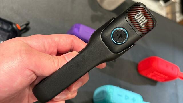 今回の発表会では、GO 5と組み合わせて使える小型ワイヤレスマイク「Easy Sing Mic」も披露されました。