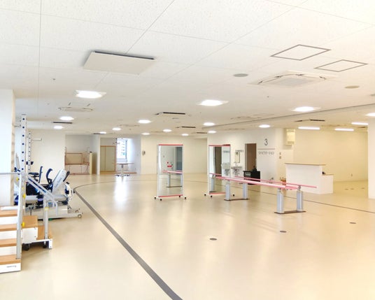 1. 最新のリハビリテーション設備 広々としたスペースに最新の訓練機器を配備しました。自然光をふんだんに採り入れた開放的な環境の中で、身体機能の回復を総合的にサポートいたします。