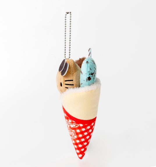 クレープに包まれたキティがキュートなぬいぐるみチャームは、マリオンクレープで特に