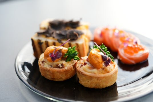 メニューは、レストランならではの上質なセイボリーを主軸に、繊細なスイーツをバランスよく取り揃えたティースタンドでご提供いたします。本日のスープやトリュフフライ、エッグトリュフサンドイッチ、クラブケーキスライダーといった贅沢なお食事としての満足度が高いラインナップに加え、ストロベリーローズケーキやカフェショコラムースなどの華やかなデザートが並びます。