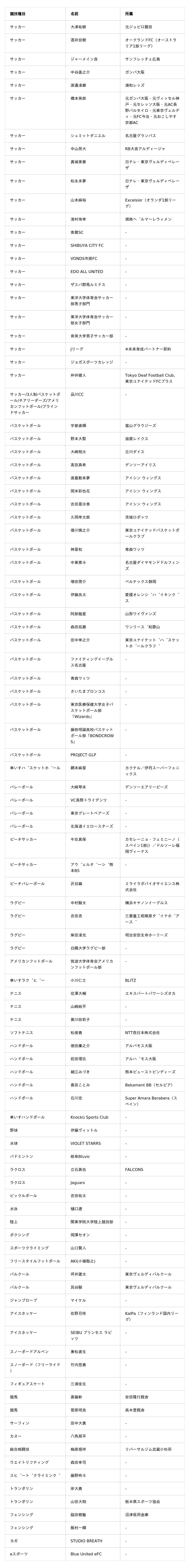 <BASE UP SPORTS サプライヤー契約一覧(現時点)>
