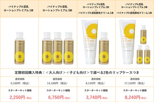 *2 パイナップル豆乳ローションプレミアム1点、リップケース1点、スタートガイド付き定期2カ月コース…通常価格5,160円(税込)のところ、初回限定価格2,250円(税込)/限定価格は初回購入時のみ適応