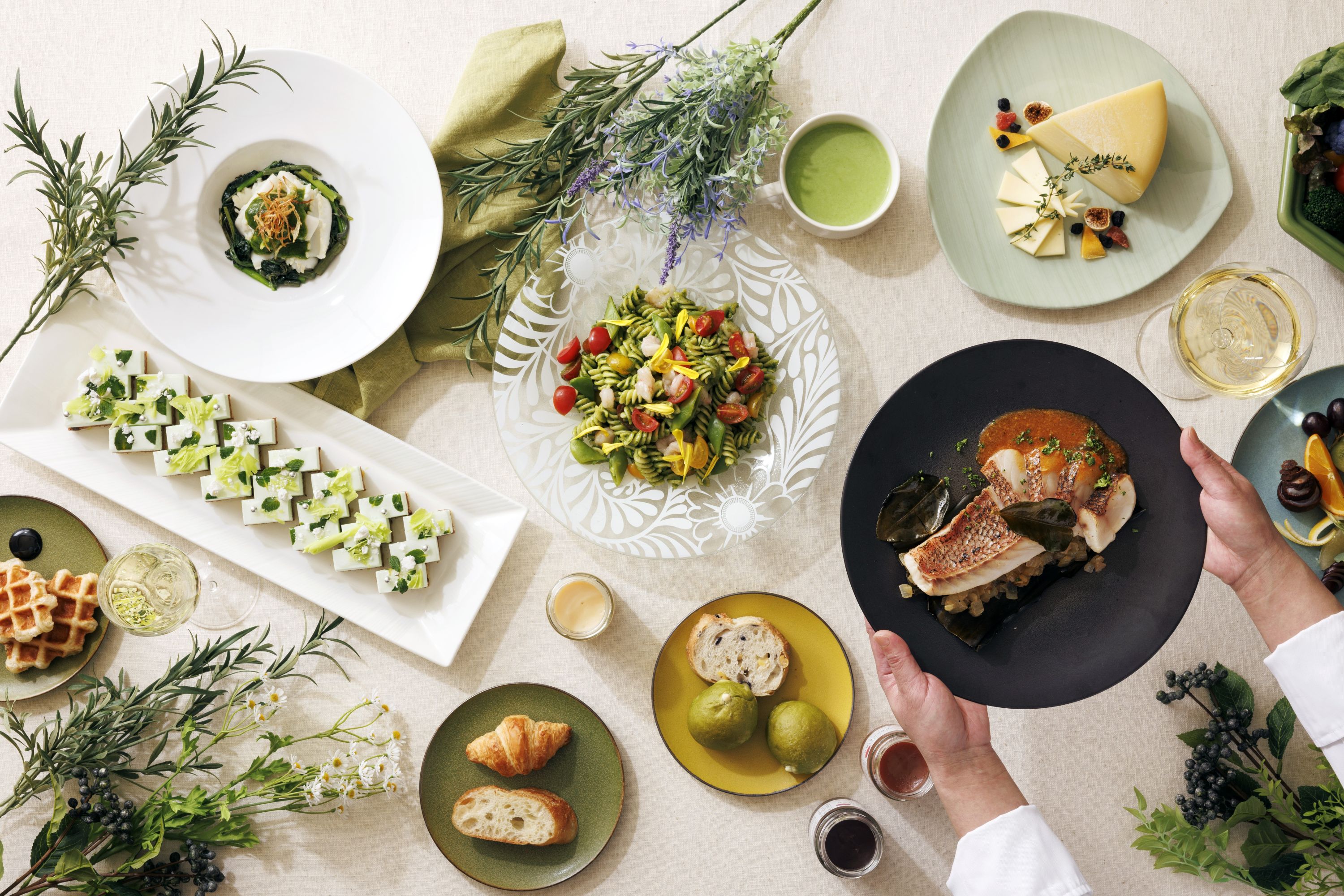 オリジナルハーブティーやポットでご提供する中国茶、TWGのティー2種類など、合計9種類のドリンクをフリーフローでご用意いたします。