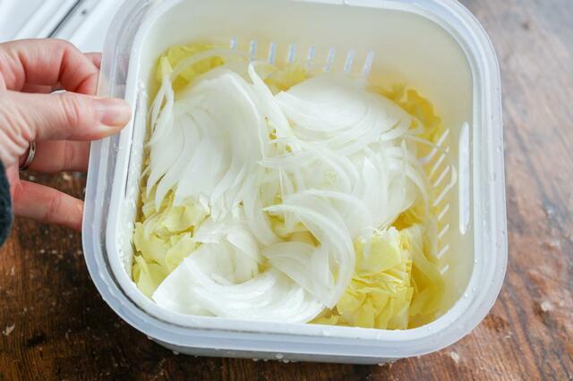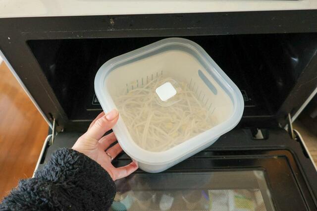 野菜をスライスし洗ったら、そのまま専用の「中ふた」をしてレンジでチン……というスマートな流れが叶います。