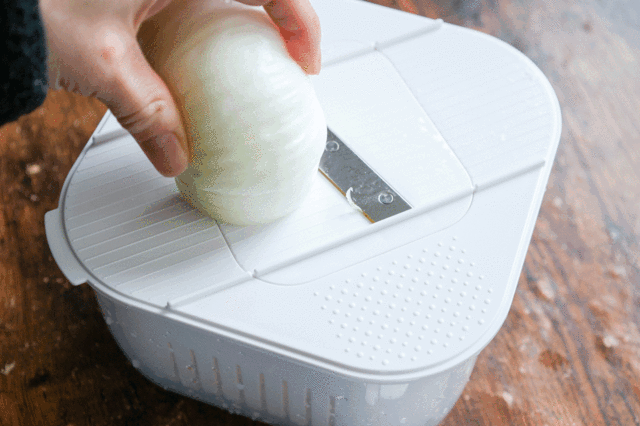 例えばオニオンスライスやサラダを作るときも、スライス後にキャッチされるザルで、そのままサッと水洗いできます。