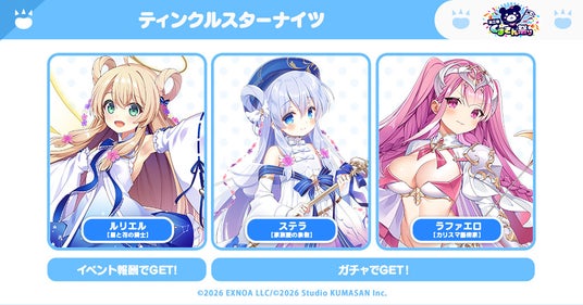 『第二回くまさん祭り』限定コラボキャラクターとして「【星と花の騎士】ルリエル」「【家族愛の象徴】ステラ」「【カリスマ藝術家】ラファエロ」が新たに登場します!