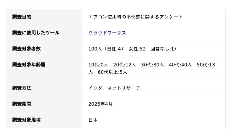 エアコン使用時の不快感に関するアンケート調査の概要
