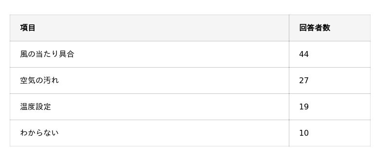 - 不快感を感じる原因として最も可能性が高いと考えられているのは「風の当たり具合」。
