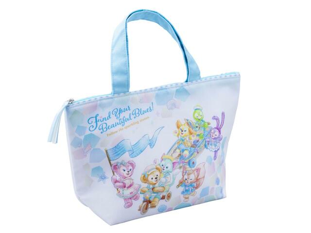 “ファインド・ブルー号”に乗って青色さがしに出発するダッフィーたち。メインアートそのものではなく、周りのきらめく石やロゴも綺麗にデザイン。