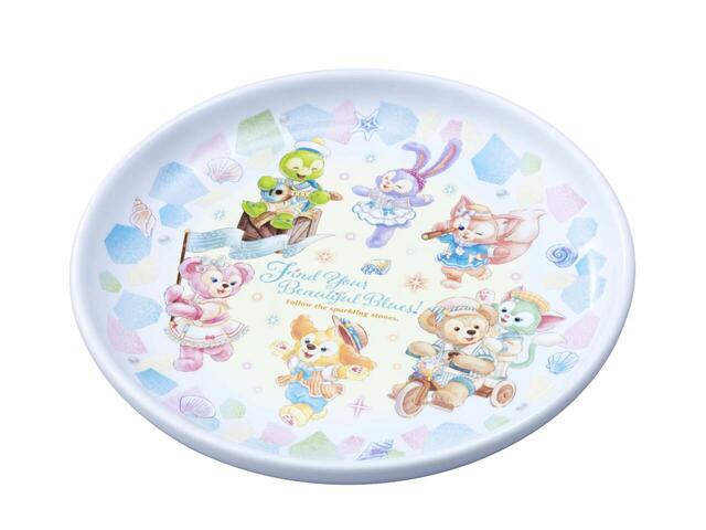 ダッフィーたちが砂浜で見つけたきらきら光る石で縁取られたデザイン。