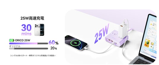 最新の**GaN(窒化ガリウム)**チップを採用することで、手のひらサイズながら高出力を実現。