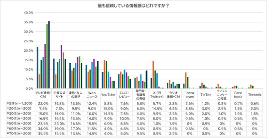 また、50代・60代では他媒体よりも「企業公式サイト」「家族・友人の意見」への信頼が高く、情報の真偽を重視する傾向が強いことがうかがえます。