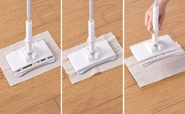 一般的な床用ワイパーは、長方形の形をしていますが、この商品では一辺が湾曲しています。