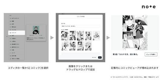 noteはこれまでも、日本最大級の創作コンテスト「創作大賞」や、人気マンガ編集部と連携した投稿企画「#わたしのマンガを見て」などを通じて、マンガを描くクリエイターの活躍の場をひろげてきました。noteへの投稿をきっかけに書籍化されたマンガ作品も数十冊にのぼります。4月8日からは「創作大賞2026」マンガ部門・コミックエッセイ部門の応募も始まっており、マンガを描くクリエイターのみなさんが作品を届ける場の選択肢をひろげるために、本機能をリリースします。