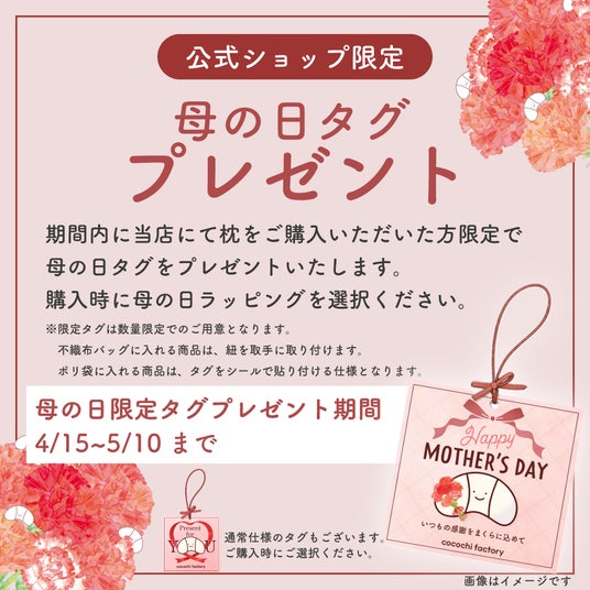 ・内容:対象の枕商品に「母の日カード」を添えてお届け・対象期間:2026年4月15日~2026年5月10日受注分まで
