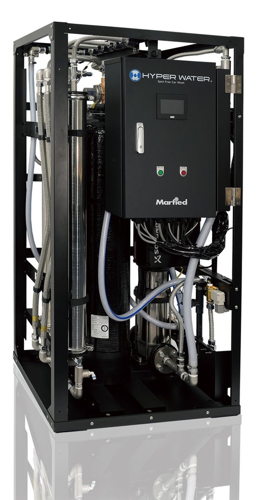 マーフィードが展開する『HYPER WATER(ハイパーウォーター)』は、洗車後の水シミの原因となる不純物を除去した超純水を精製する洗車専用システム。洗車の作業工程から拭き上げを省略し、作業者の技量に左右されることなく、誰が使用しても同じ仕上がりを安定して実現します。