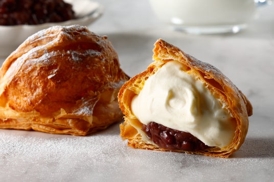店内のオーブンで焼き上げた”サクサク”のパイに、十勝産小豆の粒あんと北海道産生乳から作られた生クリームとマスカルポーネチーズ、練乳を合わせた優しい甘さのミルククリームを閉じ込めました。