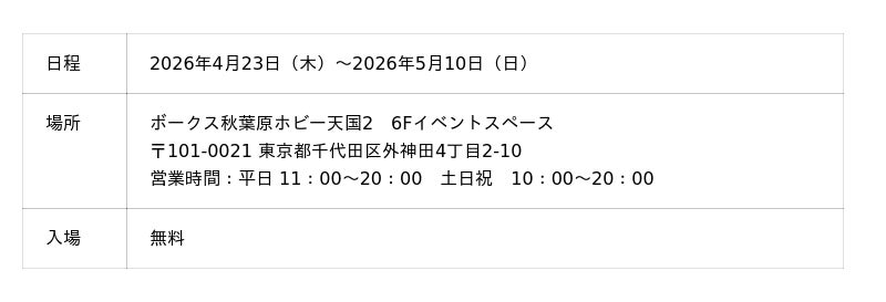 ボークス秋葉原ホビー天国2にて前回開催したイベント同様、メインビジュアルを全面にあしらった店内装飾も要チェック!
