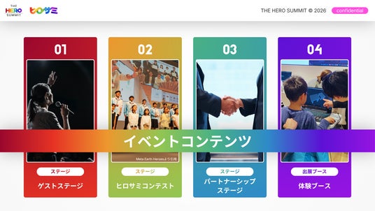 株式会社Meta Heroes(本社:大阪府大阪市、代表取締役:松石和俊)は、2026年12月19日(土)・20日(日)の2日間、愛知県名古屋市にある日本最大級のオープンイノベーション拠点「STATION Ai」にて、社会課題解決とエンターテインメントを融合した体験型サミット「THE HERO SUMMIT 2026(ヒロサミ)」を開催することをお知らせいたします。