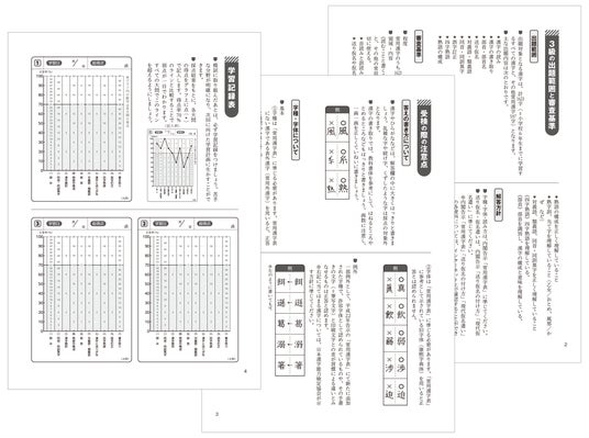 漢字検定を受けるにあたっての注意点や、自己採点の点数を記録する学習記録表つき。自分の弱点が把握しやすくなるので、効率的に学習することができます。