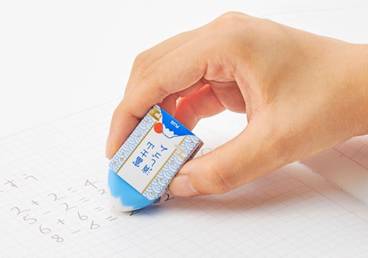 「富士山消しゴム」は、1989年に発売を開始したロングセラー消しゴム「エアイン」と同じ消しゴム樹脂を採用。多孔質セラミックスパウダーが無数のカドを生み出し、“いつもカドで消すような軽く快適な消し心地”を実現しています。