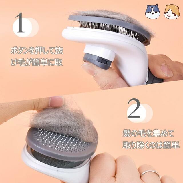 背面のボタンを親指で押すだけで、針に溜まった毛が押し出され、まとめてポイッと捨てられます。
