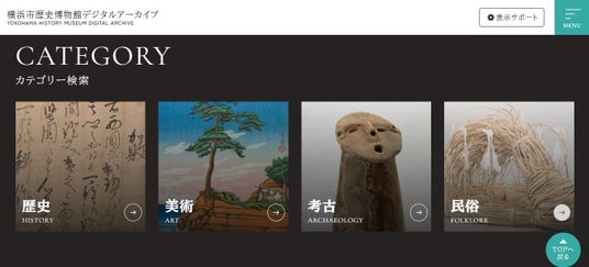 カテゴリー検索「歴史」「美術」「考古」「民俗」の各分野別の資料を一覧できます。