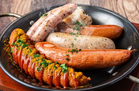 ソーセージを贅沢に5種類盛り合わせました。食べ比べを楽しめる、満足感たっぷりの一皿です。