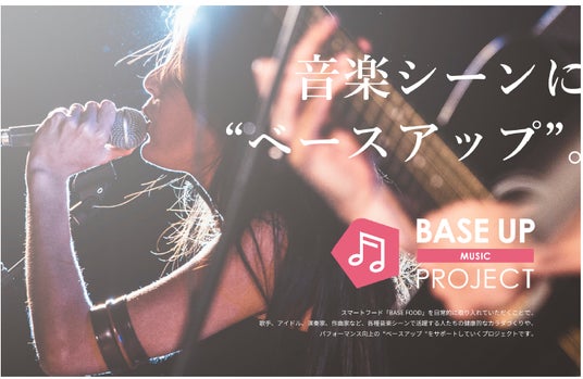 スマートフード完全栄養食である「BASE FOOD」を日常的に取り入れていただくことで、歌手、アイドル、演奏家、作曲家など、各種音楽シーンで活躍する人たちの健康的なカラダづくりや、パフォーマンス向上の“ベースアップ“をサポートしていくプロジェクトです。