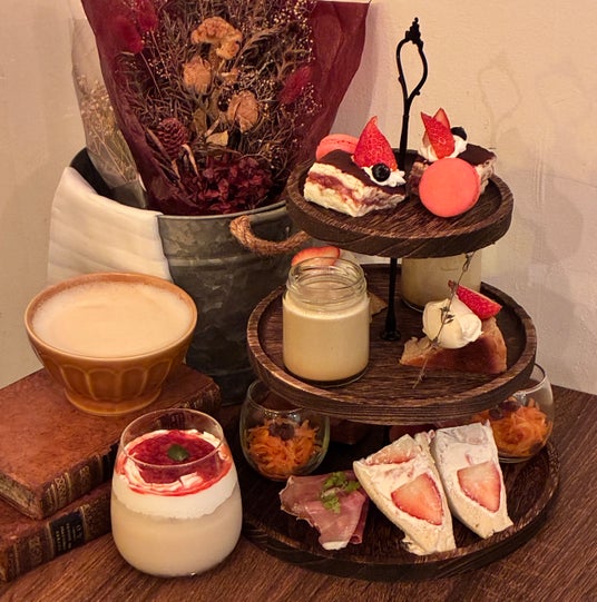 さらに人気の「いちごサンド」や、カルーアに漬け込んだレーズンを使用した「キャロットラペ」、お口直しにぴったりな「ハモンセラーノ」を組み合わせることで、甘さと塩味のバランスを楽しみながら、最後まで飽きることなくお召し上がりいただけます。
