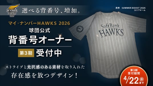 鷹祭SUMMER BOOST 2026 ユニフォームにあなただけの背番号を!マイ・ナンバーHAWKS 2026第3期のオーナー様を募集いたします。