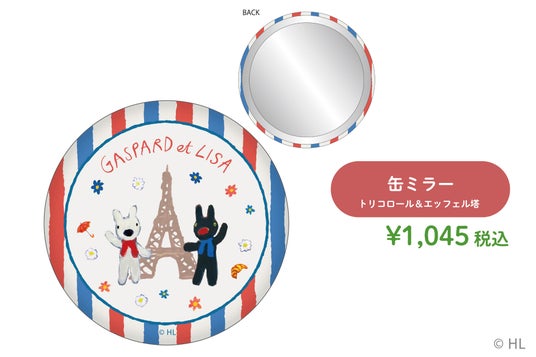 リサとガスパール 缶ミラー トリコロール&エッフェル塔