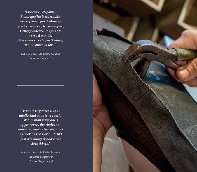 イタリア語で「蝶」を意味するブランド名は、完成した靴のあまりの軽やかさに“まるで蝶のようだ”と評されたことに由来します。