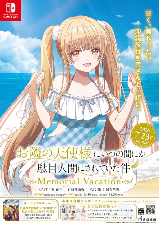 株式会社MAGES. (東京都港区 代表取締役社長:浅田誠)は、 2026年7月23日発売予定のNintendo Switch(TM) 2/Nintendo Switch(TM)用アドベンチャーゲーム「お隣の天使様にいつの間にか駄目人間にされていた件 Memorial Vacation」について、出演声優の直筆サイン色紙が当たるSNSキャンペーンを開催することをお知らせいたします。