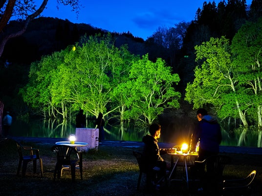 - ライトアップ期間中に合わせ、今年も水没林BARがオープンします。水没林は、地元の人を中心に運営されています。こちらのBARも飯豊町中津川への移住者が運営をします。5月3日は高畠町のBAR MARの竹田眞幸さん、5月4日~5日は米沢市のLive House ARBさんが出店して花を添えます。