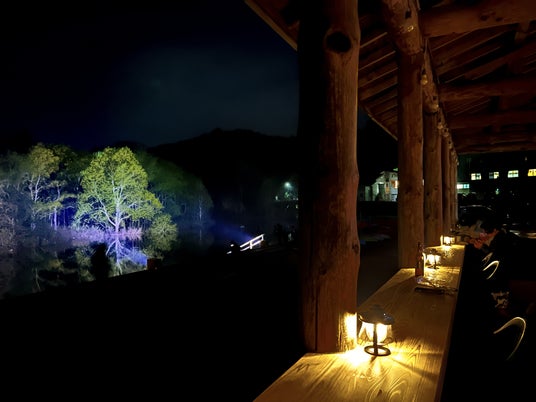 - さらに、より近くで水没林を鑑賞して頂く為に、今年は新たにBARの外側にウッドデッキも設置。ライトアップされた水没林を眼前で眺める事ができます。