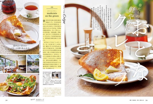 昨今ますます人気のクレープはシンプルに生地を楽しむものからさまざまな具材をトッピングしたものまでぐっと広がりを見せています。その味わいはまさに、「おとな」向き。プラス、蕎麦粉を使ったガレットも注目で、甘いだけじゃない、食事系も充実したグルメなひと皿が集まりました。紅茶やワイン、シードルなどとともに軽やか気分でお楽しみください。