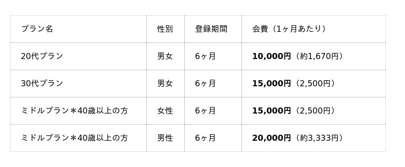 ※入会金・登録料・成婚料などの追加費用は不要です。
