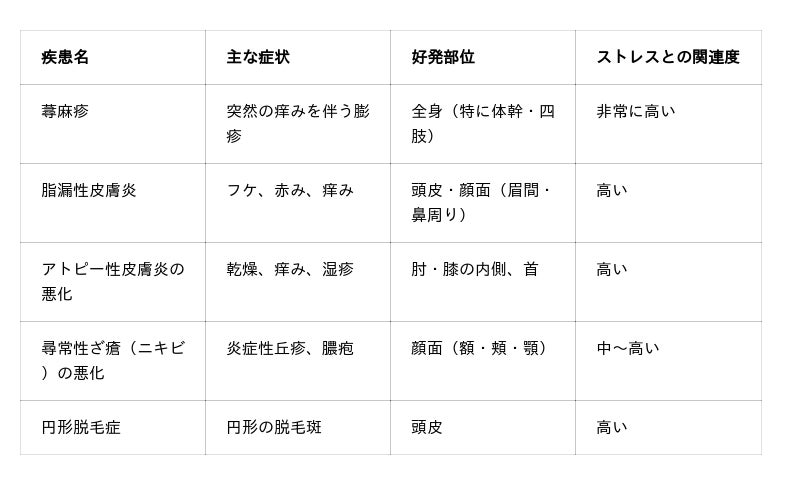 ストレス性皮膚疾患の種類と特徴の比較