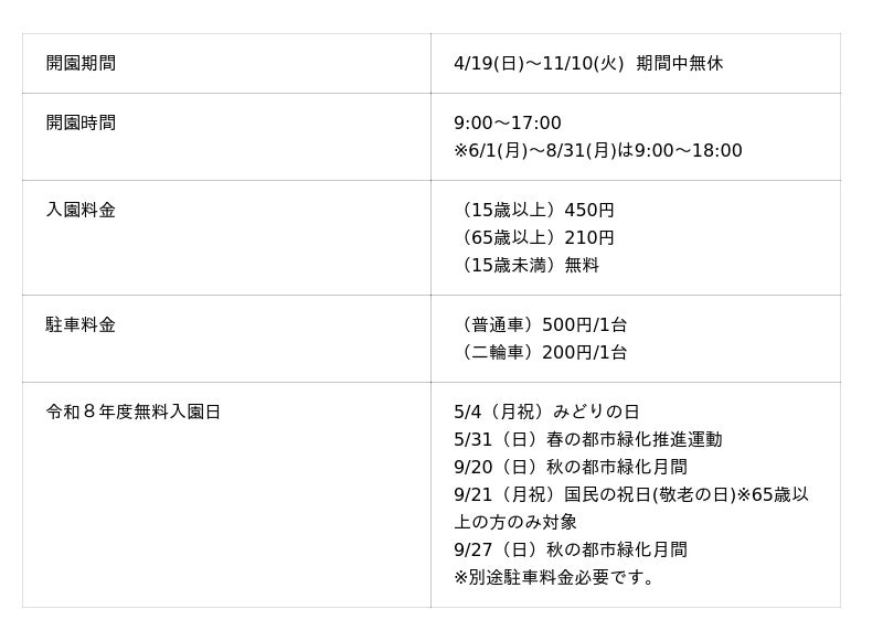 ※当日のメニューや金額、定員は公園HPをご確認ください。