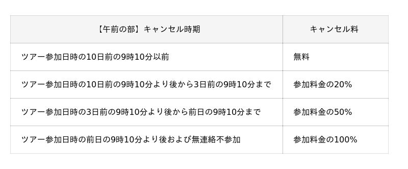 (ツアー中止の場合は、参加者の代表者へ事前に予約システムからご連絡差し上げます。)