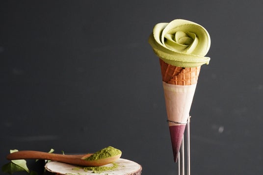ワッフルコーンに咲いた、バラの形のソフトクリームです。
